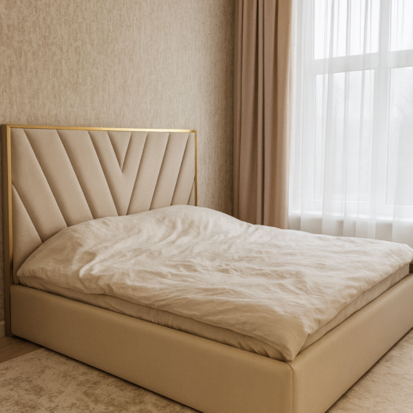 Patul Olivia este un model tapițat modern cu detalii aurii si o nuanta calda, creat pentru cei care apreciază liniile curate, detaliile atent lucrate și confortul de durată. Designul său minimalist, dar rafinat, îl face ușor de integrat în orice stil de dormitor – de la contemporan, la elegant sau chiar luxos.