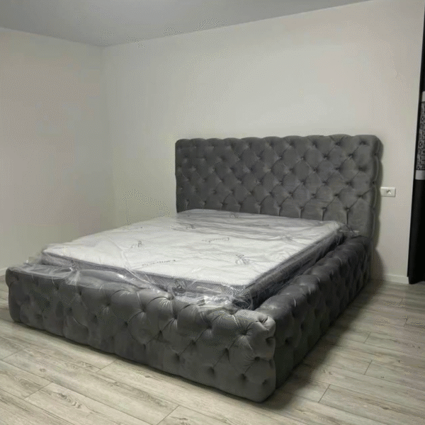 Acest pat tapițat impresionează prin designul său simplu, curat și elegant, ideal pentru cei care își doresc un dormitor modern, fără încărcătură vizuală. Tapițeria gri, fin lucrată, oferă un aspect plăcut și ușor de integrat în orice stil de amenajare – de la minimalist, la contemporan sau chiar clasic.