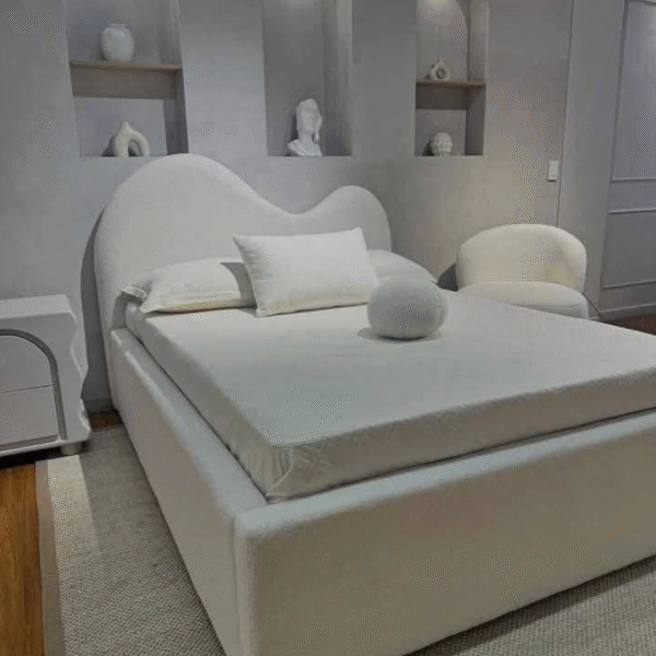 Tapițeria este fin realizată, cu materiale premium la alegere, iar structura patului este bine proporționată, oferind atât confort, cât și durabilitate. Formele sale neconvenționale aduc un aer contemporan și fresh, făcându-l ușor de integrat în dormitoare moderne, minimaliste sau elegante.