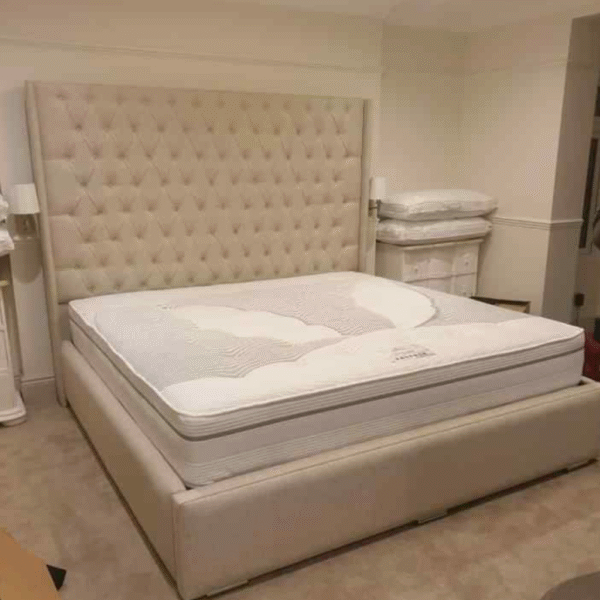 Richmond este un dormitor de lux creat pentru cei care își doresc un spațiu spectaculos, armonios și perfect personalizat. Cu un design modern și impunător, acest model se remarcă prin tăblia sa înaltă, tapițată în stil geometric, ce oferă un efect vizual de excepție și transformă întreaga încăpere într-un decor rafinat.
