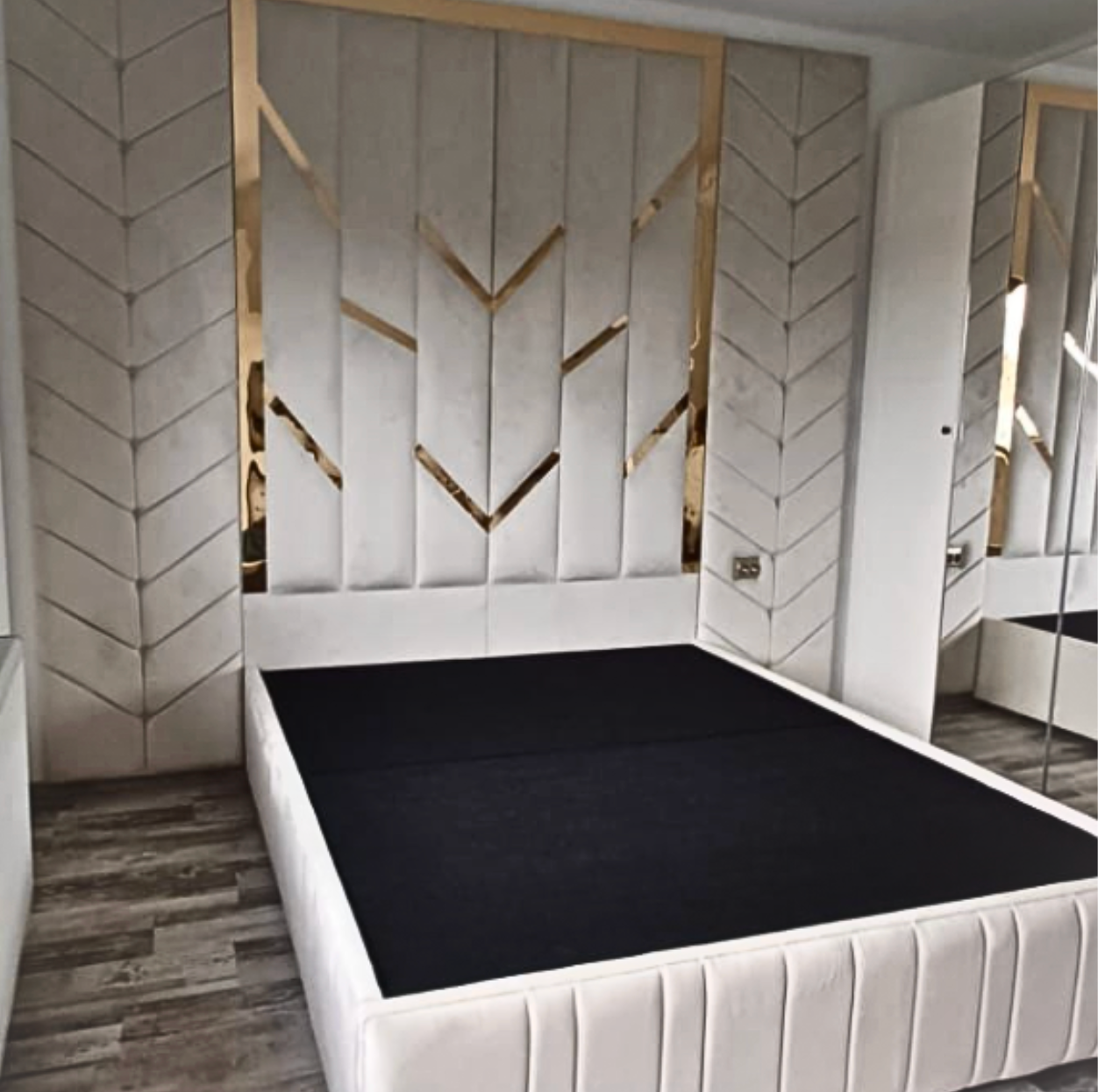 Patul Deluxe impresionează prin designul său spectaculos, cu tapițerie care acoperă întreg peretele și detalii aurii care adaugă un plus de eleganță și exclusivitate. Este conceput pentru a oferi un confort desăvârșit și pentru a transforma dormitorul într-un spațiu sofisticat și luxos.